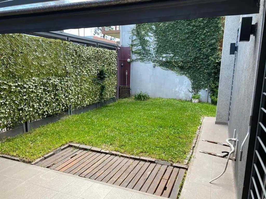 Ubicado en planta baja y construido en una sola planta, dispone de living, cocina comedor con isla, dos dormitorios con placard, baño completo, lavadero, galería, parque, parrilla y garaje.
