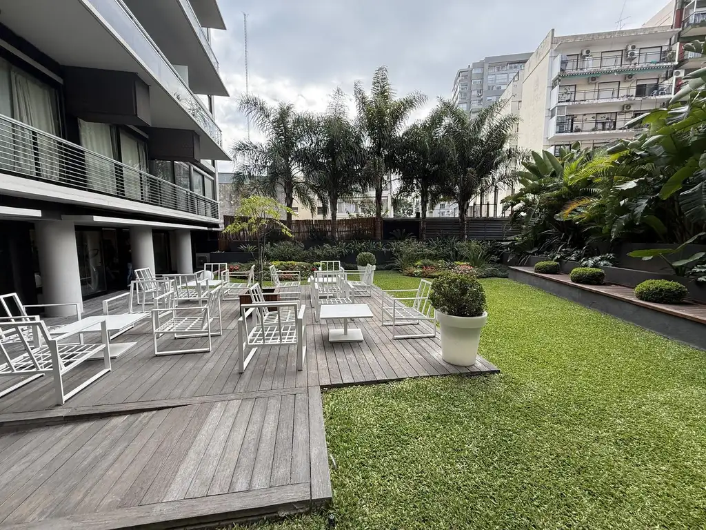 El edificio ofrece amenities de primer nivel: gimnasio totalmente equipado, pileta exterior, jacuzzi, solarium, dos sectores de parrillas, SUM, sauna, sala de masajes, jardines y seguridad 24 horas.