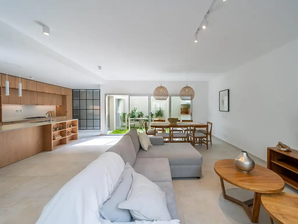Planta alta: se ubica el sector íntimo de la vivienda con dos dormitorios. El principal en suite, con vestidor y baño, y el restante con un baño a continuación. Desde la llegada a dicha planta se puede acceder también a la terraza de la casa. La misma, que también posee un acceso independiente desde la planta baja, cuenta con un deck de wpc y pileta. Desde dicha terraza se puede tener visuales tanto a la avenida arbolada como al centro de manzana.