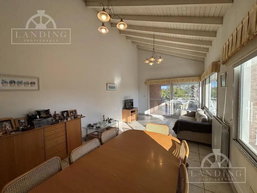 Dormitorios principal en suite, dos dormitorios que comparten un baño completo, radiadores, aires en todos los ambientes, hermosa vista a la pileta con balcón con parrilla.