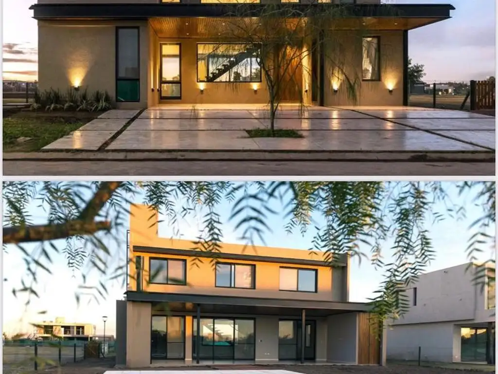 En planta alta, un pasillo distribuidor nos conecta con tres dormitorios con placares completos, asistidos por un baño con antebaño. La suite principal, con vestidor de gran tamaño, cuenta con baño privado y acceso a un balcón terraza con vistas privilegiadas. Además, un cuarto ambiente ofrece la posibilidad de convertirse en playroom o espacio de trabajo.