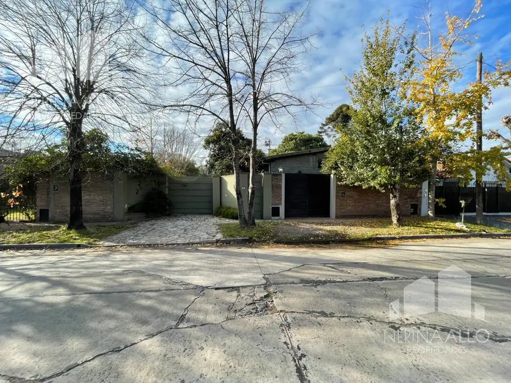 PB: Jardín al frente con rejas, living comedor, cocina comedor diario amoblada, toilette, lavadero incorporado, 3 dormitorios, cochera pasante con entrada, parrilla, piscina, fondo libre parquizado arbolado y patio.