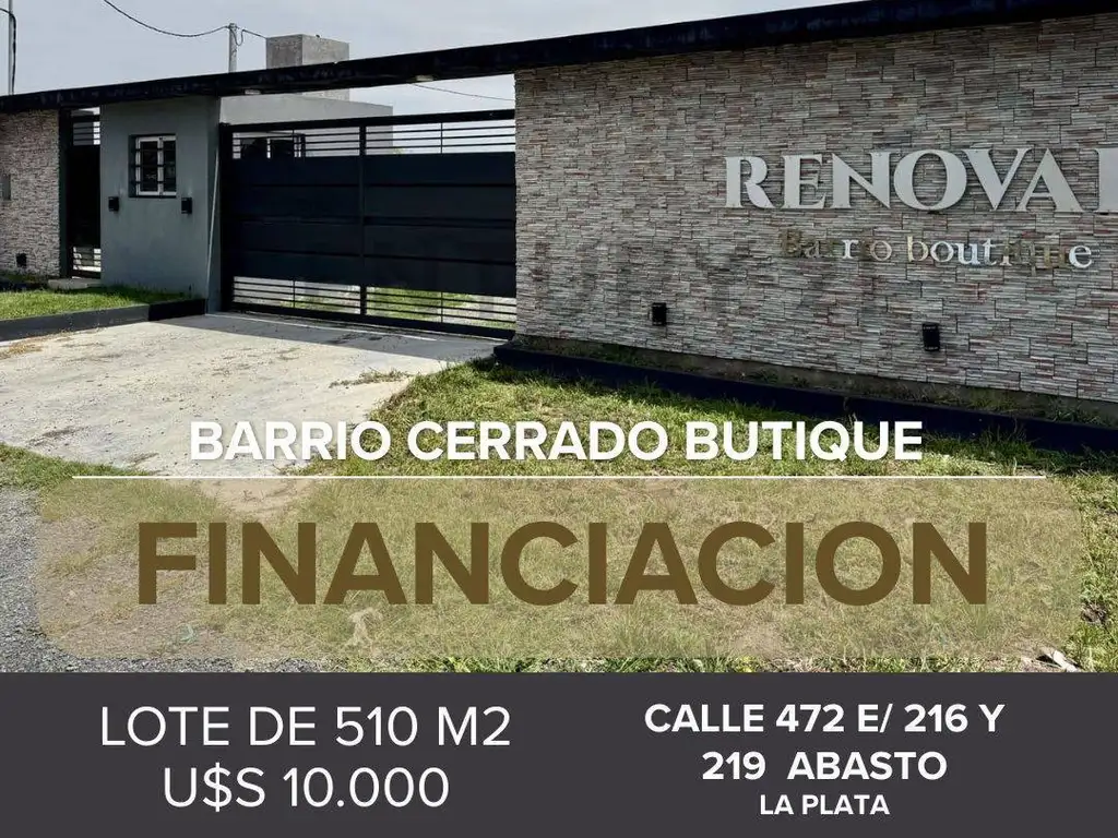 LOTE EN VENTA EN LA PLATA CON FINANCIACION, RENOVAR BARRIO BOUTIQUE