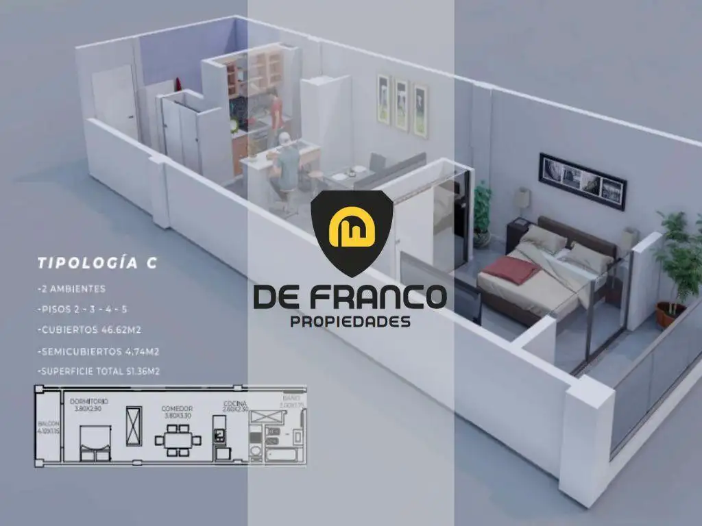 Es un Departamento de 2 AMBIENTES de categoría de 46 cubiertos + balcón casi 5 m2