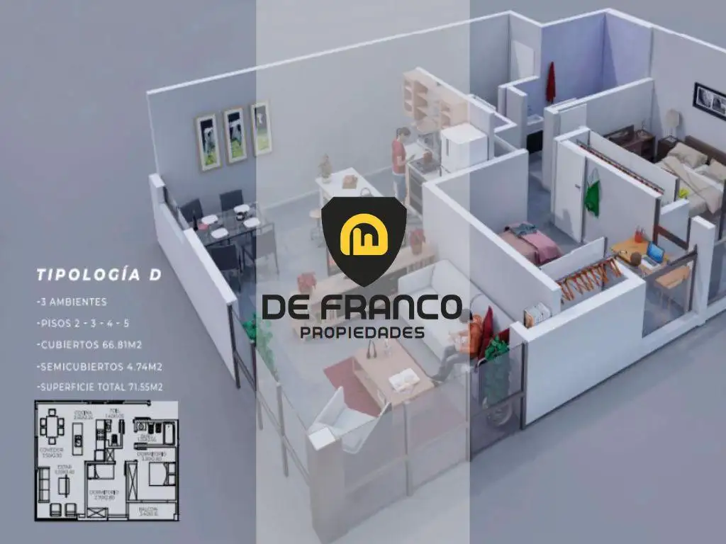 Es un Departamento de 3 AMBIENTES de categoría de 73 m2 cubiertos + balcón 4 m2