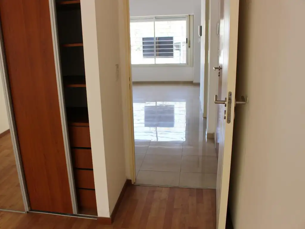 Pisos de porcelanato en todo el Departamento y símil madera en el dormitorio. La habitación tiene un cómodo placard con puertas corredizas y espejo incorporado.