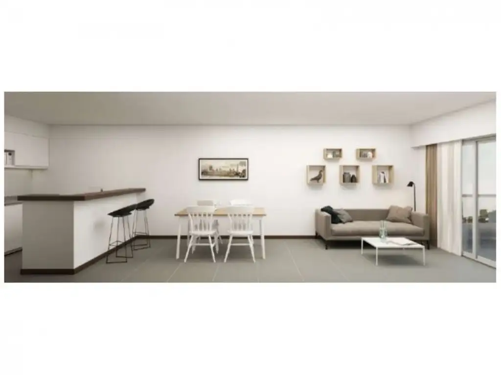 Pisos porcellanatos en estar, cocina, baño y balcón y pisos flotante en dormitorios.
