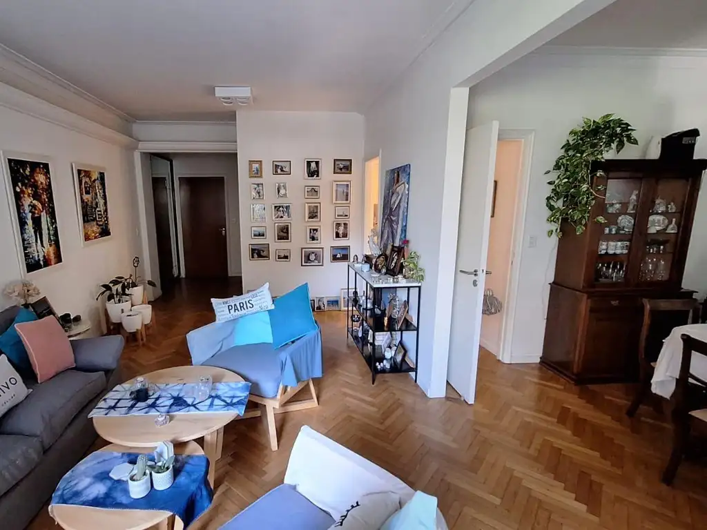 Es una propiedad cálida, luminosa y silenciosa. Los pisos y paredes están en excelente estado. Originalmente contaba con tres habitaciones, pero una de ellas fue integrada al living como comedor, manteniendo su acceso independiente y generando una doble circulación muy funcional.