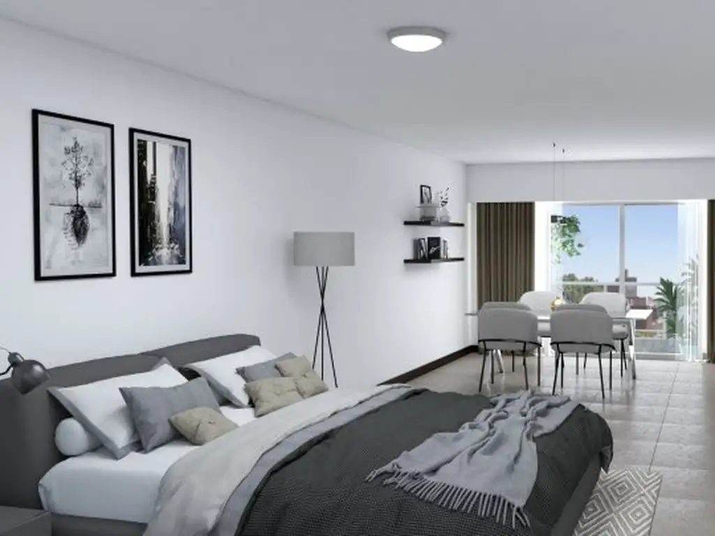 Pisos porcellanatos en estar, cocina, baño y balcón y mono ambientes y pisos flotante en dormitorios.
