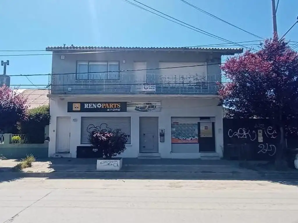Actualmente cuenta con una construcción de 240m2 cubiertos dispuestos en 2 plantas siendo la planta de abajo dos locales comerciales, uno de ellos habilitado al día de hoy.