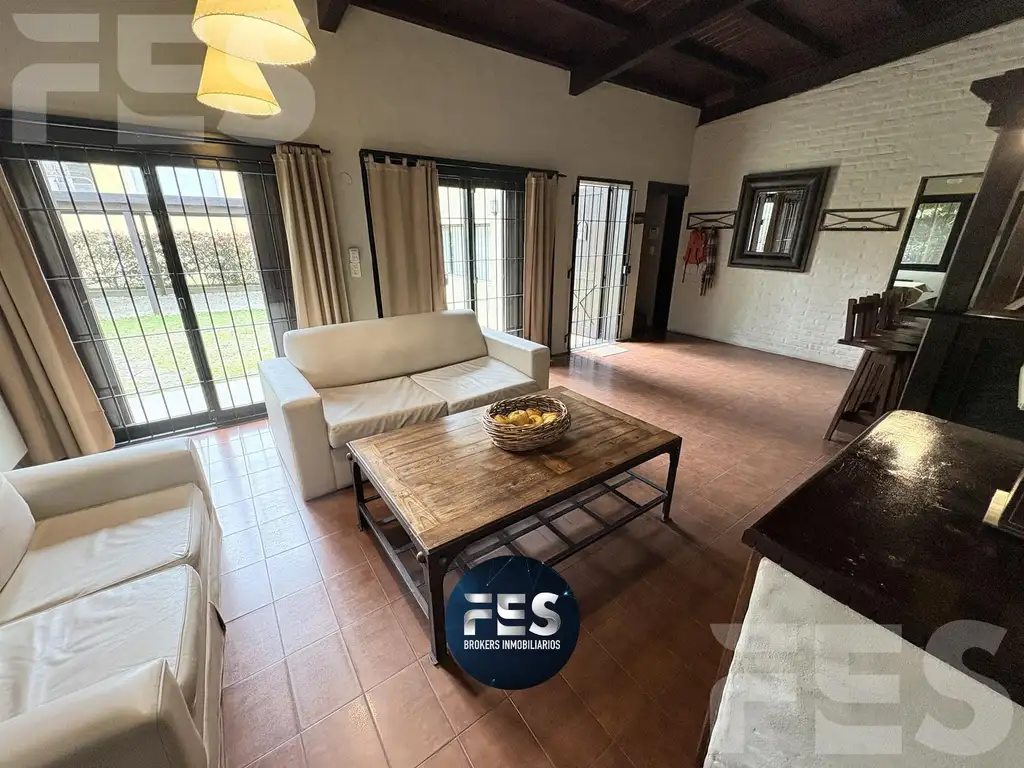 Comedor en desnivel amplio, ideal para reuniones familiares, con acceso al quincho con parrilla.