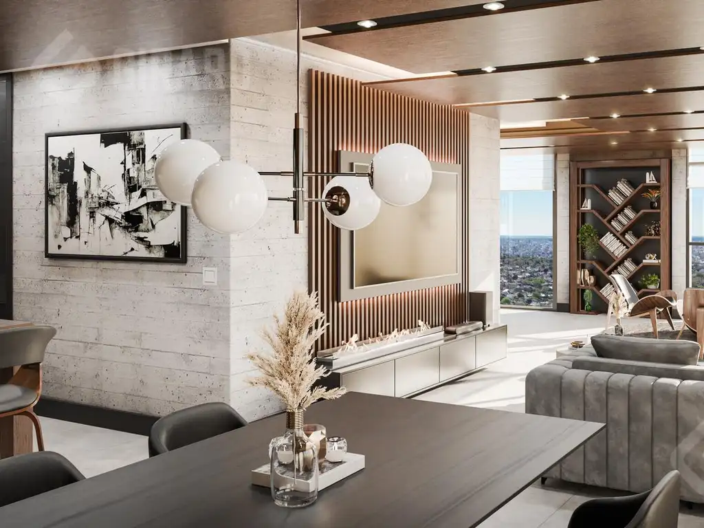 Living apaisado con ventanales que brindan una vista inigualable, con salida al balcón.