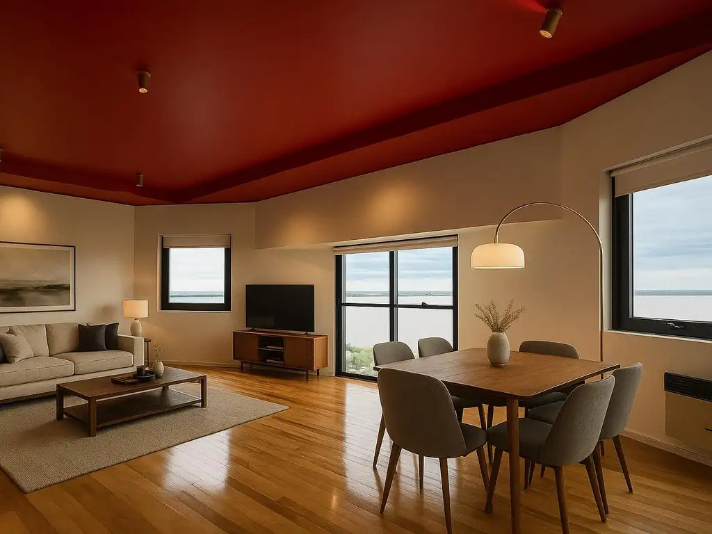 Descripción: El ingreso se realiza por escalera a la segunda planta, donde se encuentra un amplio y luminoso living comedor, perfectamente integrado con la cocina con barra desayunadora y un cómodo lavadero independiente. Este espacio social cuenta además con un toilette de recepción y grandes ventanales que permiten disfrutar de una vista franca al río, con excelente ventilación cruzada y abundante luz natural durante todo el día. Los espacios de guardado fueron cuidadosamente diseñados para optimizar la funcionalidad.
