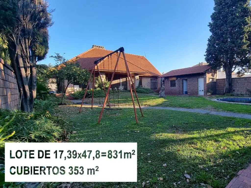 Casa 4 amb, cochera para varios vehículos, quincho, piscina y amplio jardín.