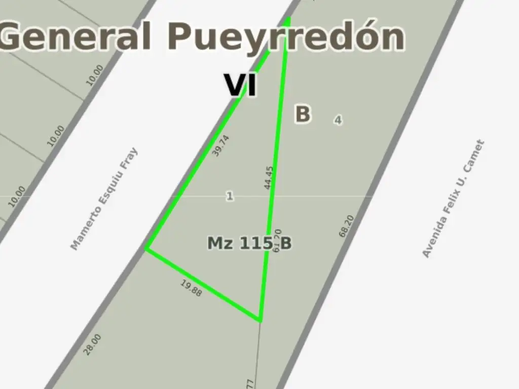 _ Terreno en venta ubicado sobre calle Fray Mamerto Esquiu entre Zacagnini y Marie Curie (Mar del Plata, Buenos Aires). Con disposición frente y orientación al oeste.