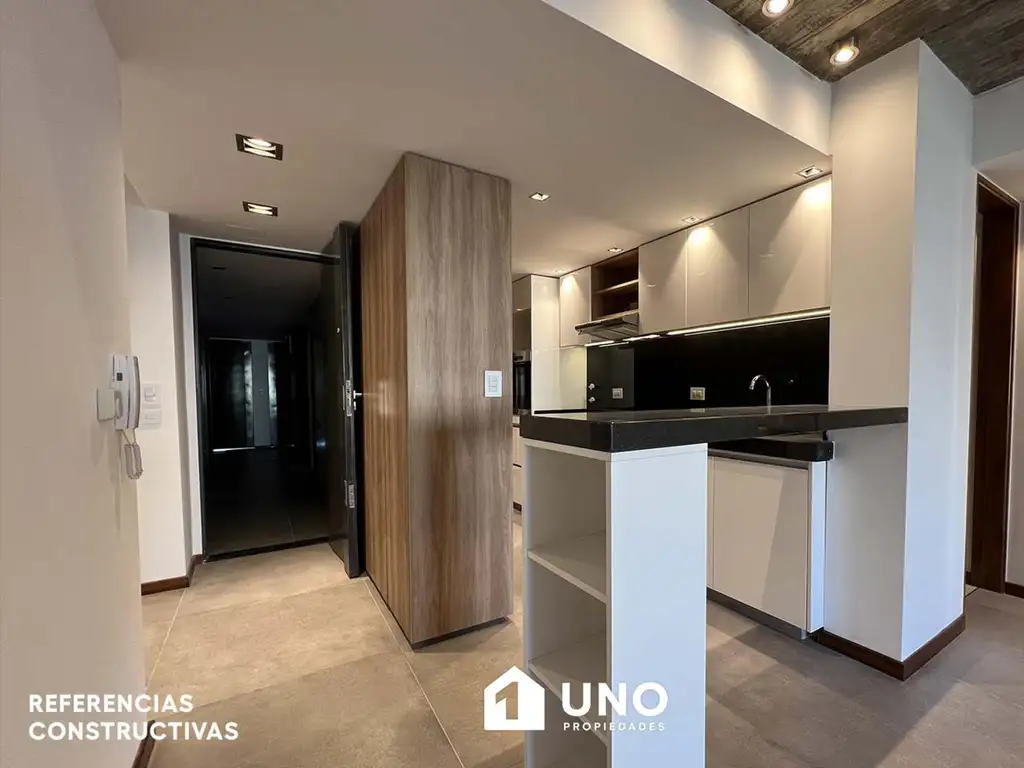 La unidad cuenta con calefacción por losa radiante en todos los ambientes (caldera individual por depto), puerta blindada de seguridad, horno empotrado y anafe a gas marca Longvie, aberturas de aluminio con doble vidrio hermético (DVH), sistema de oscurecimiento motorizado, pisos de porcelanato y placard con interiores terminados.