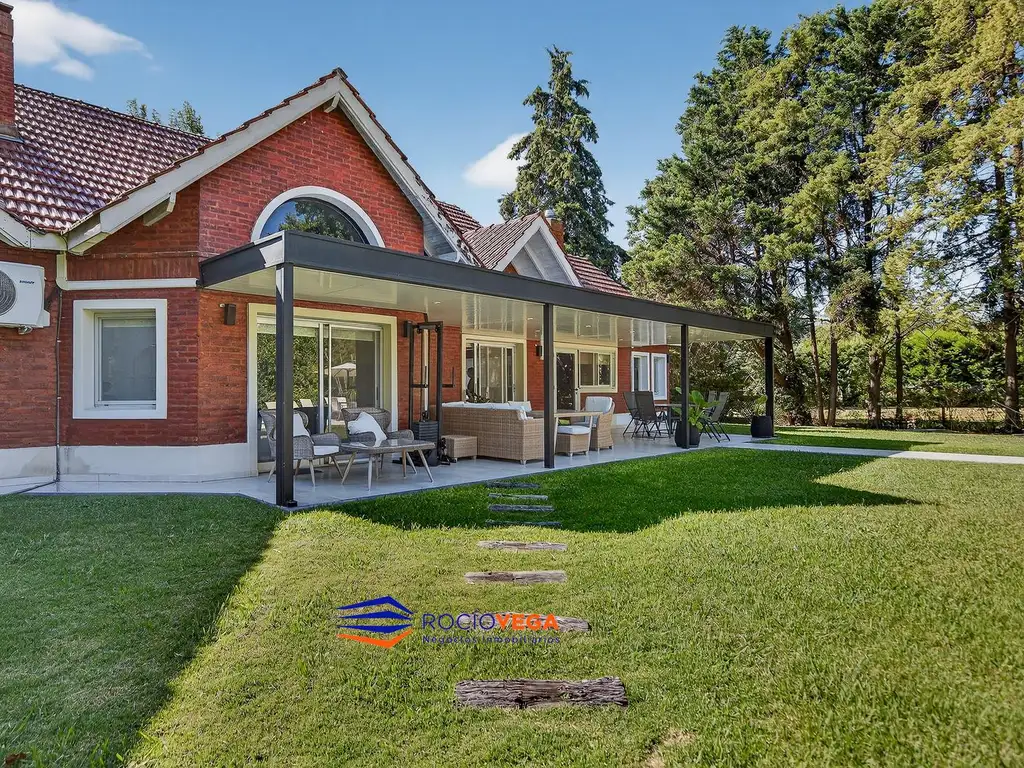 Cuenta con un hall de recepcion,amplio living con hogar,comedor con vistas al jardin,cocina,comedor diario,lavadero,dependencia de servicio,toilette,dos dormitorios en suite con vestidor y dos dormitorios mas que comparten un baño.