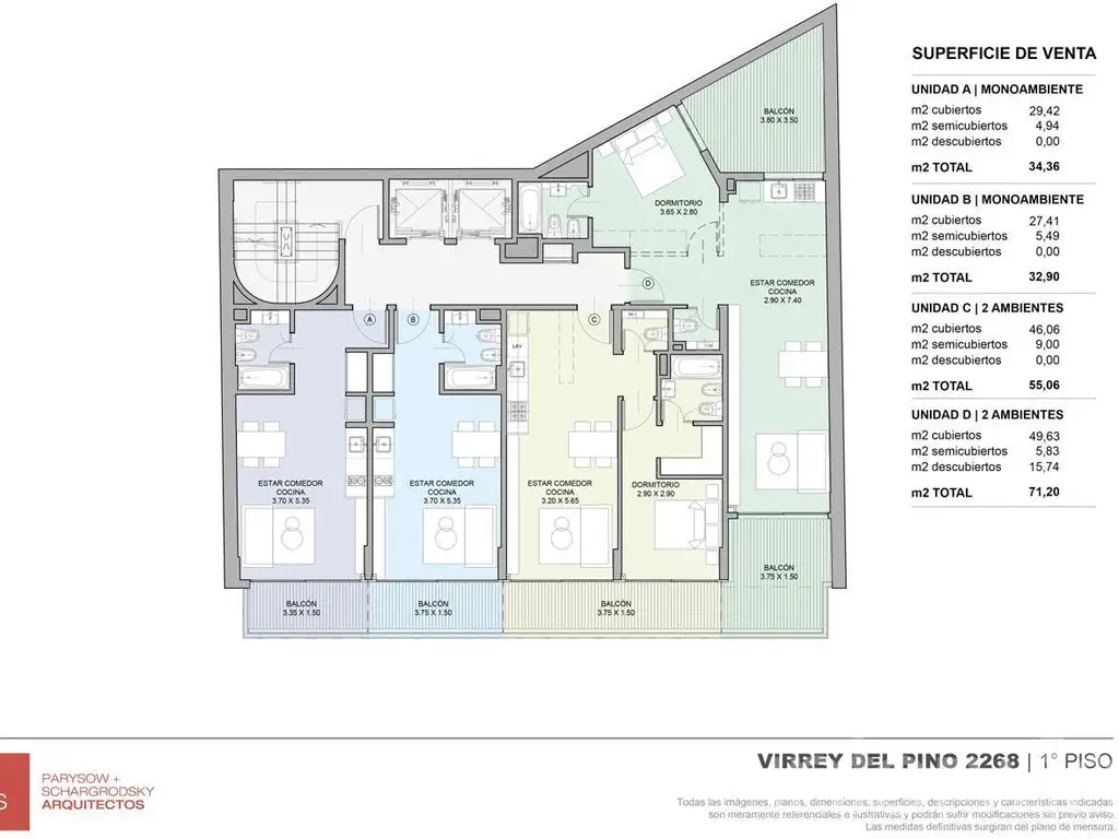 Todas las imágenes, planos, descripciones, y características indicadas son meramente referenciales e ilustrativas y podrán ser modificadas sin previo aviso. Las superficies indicadas son estimadas. Las superficies y medidas definitivas surgirán del plano de mensura final aprobado oportunamente por el GCBA. Las fechas de inicio de obra o posesión son estimadas, podrán ser reprogramadas por la Dirección de obra y dependerán a su vez de un proceso de aprobaciones municipales u otros organismos intervinientes. Los precios indicados podrán modificarse sin previo aviso. El interesado deberá realizar las verificaciones respectivas previamente a la realización de cualquier operación, requiriendo por sí o sus profesionales las copias necesarias de la documentación que corresponda.