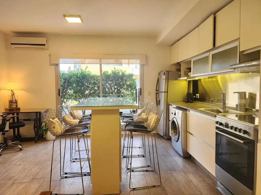 Salida a la galería, que cuenta con parrilla y jardín. Baño completo.