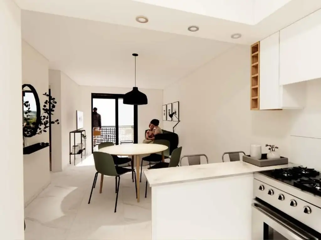 Departamentos de 1 Dormitorio internos de 38,5 m2 con balcón: Living comedor con cocina incorporada. Dormitorio con placard. Un baño completo.