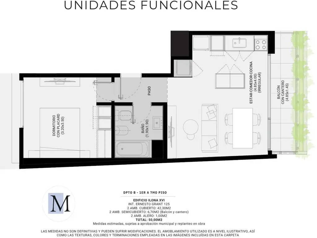 Deptos de 2 ambientes del 1° al 7° "B" desde U$ 75.000 al frente 50.00 mts totales