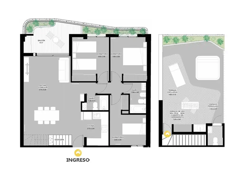 - 101 m² Cubierta