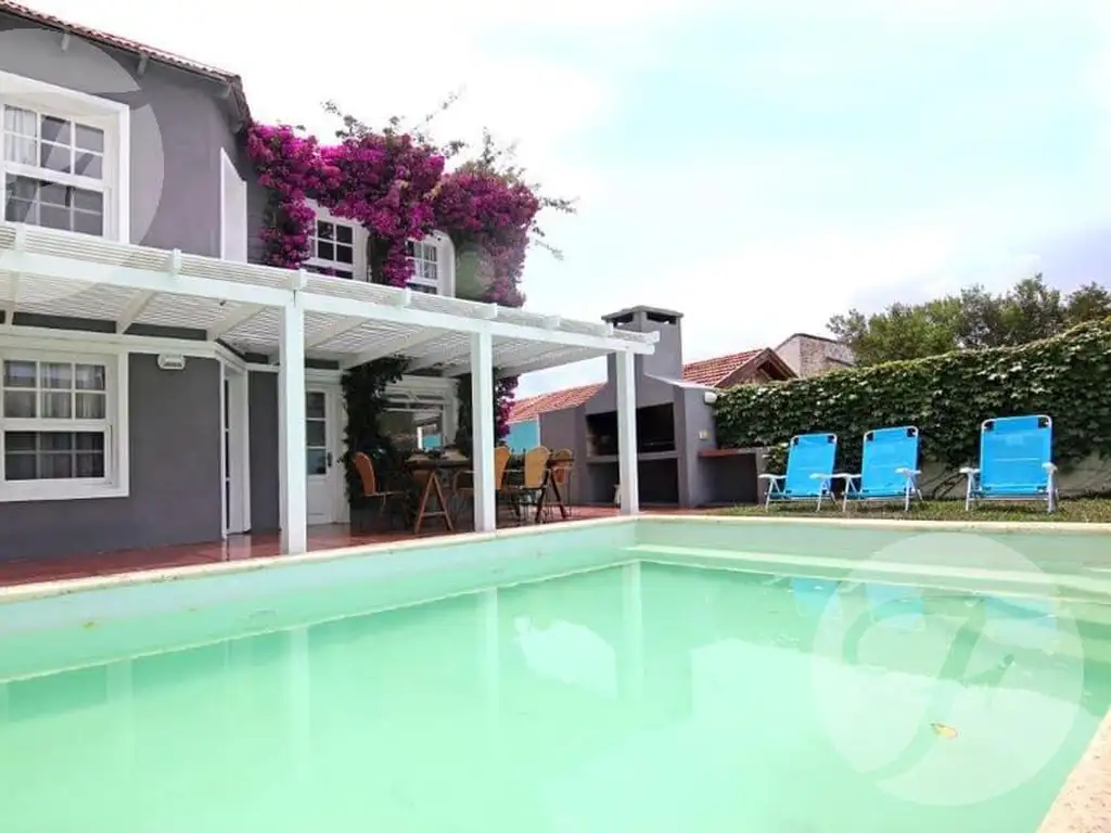 Esquinera, con muy buena luminosidad natural, distribuida en dos plantas. Planta baja: cuenta con living comedor, cocina, comedor diario y toilette. Planta alta: master suite con aire acondicionado y otros 3 dormitorios que comparten un baño completo. En el exterior de la casa: dormitorio de servicio con baño , piscina climatizada y jardín cercado. Cochera para 1 vehículo, alarma y Wi-Fi.