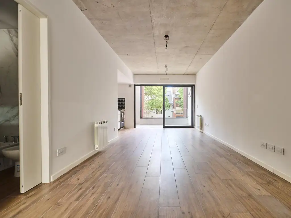 A estrenar. El departamento posee un amplio living-comedor con cocina integrada, balcón amplio al frente. 42m2 cubiertos, 7m2 semicubiertos y 49m2 totales.