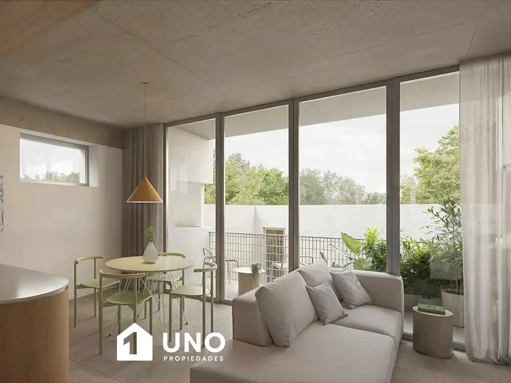 Semipiso orientado al este con entrega en Octubre de 2027. Se ingresa al estar/comedor, el mismo cuenta con la cocina equipada, ventilación natural y salida al balcón al contrafrente. el dormitorio dispone de placard, baño completo y antebaño. Terraza de uso exclusivo con parrillero.