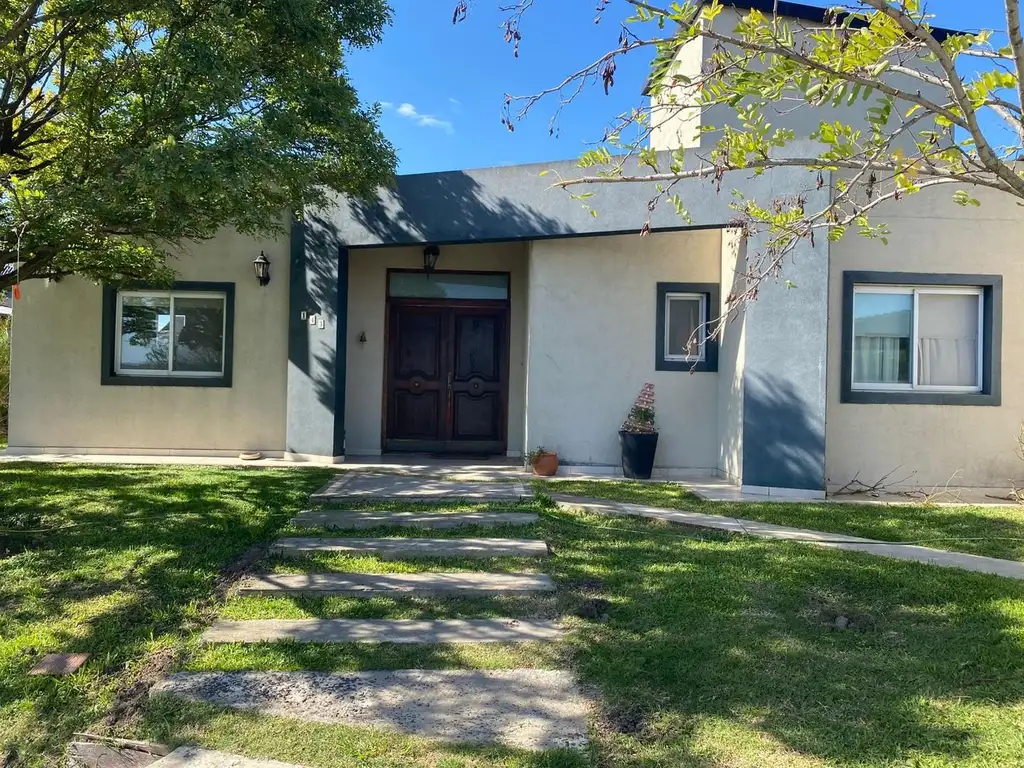 Barrio súper consolidado. La casa está desarrollada en una planta con espacios sociales amplísimos y vistas divinas al agua, tiene tres dormitorios más escritorio o cuarto dormitorio, luminosa y excelente galería, jardín en desniveles con tablestacado. Cochera semicubierta con espacio para dos autos uno al lado del otro. Además esta propiedad está muy bien ubicada en un cul de sac.