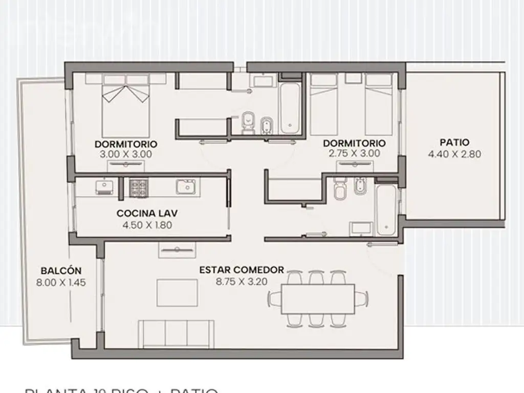 - 2 dormitorios