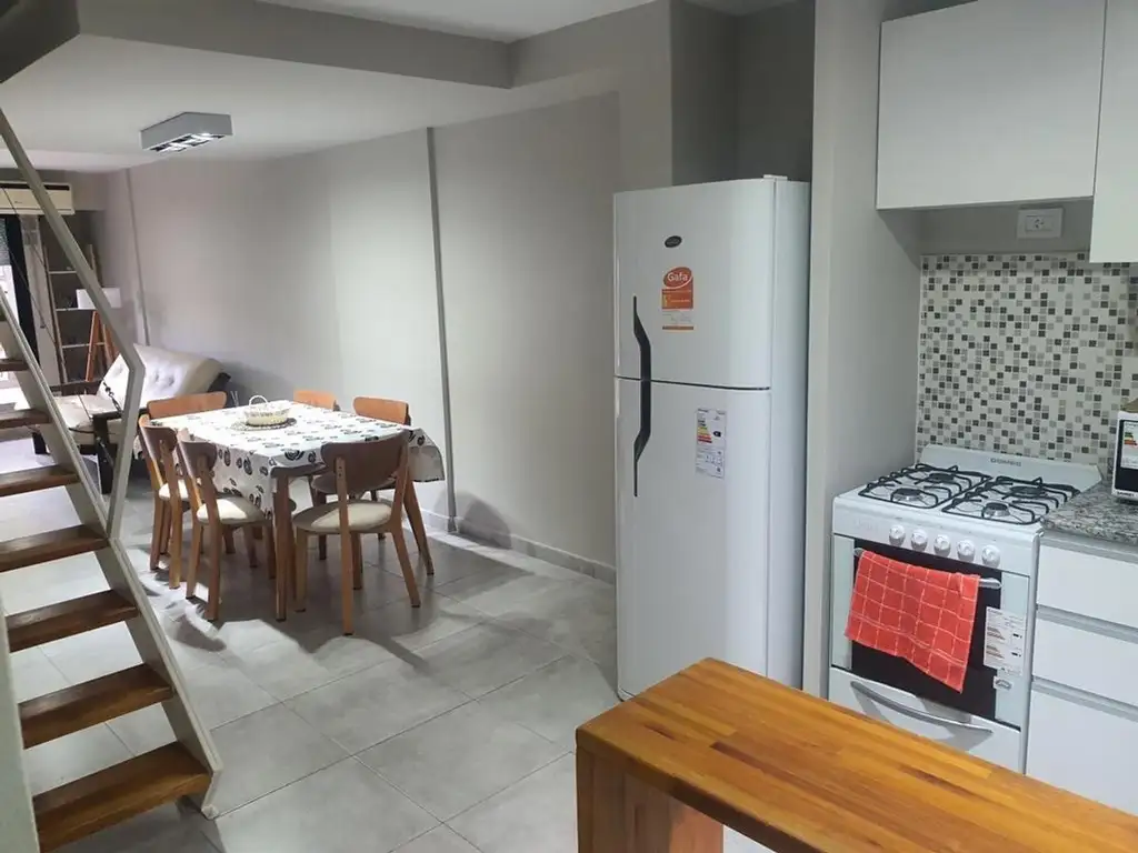 Ingreso a living comedor amplio con cocina integrada equipada