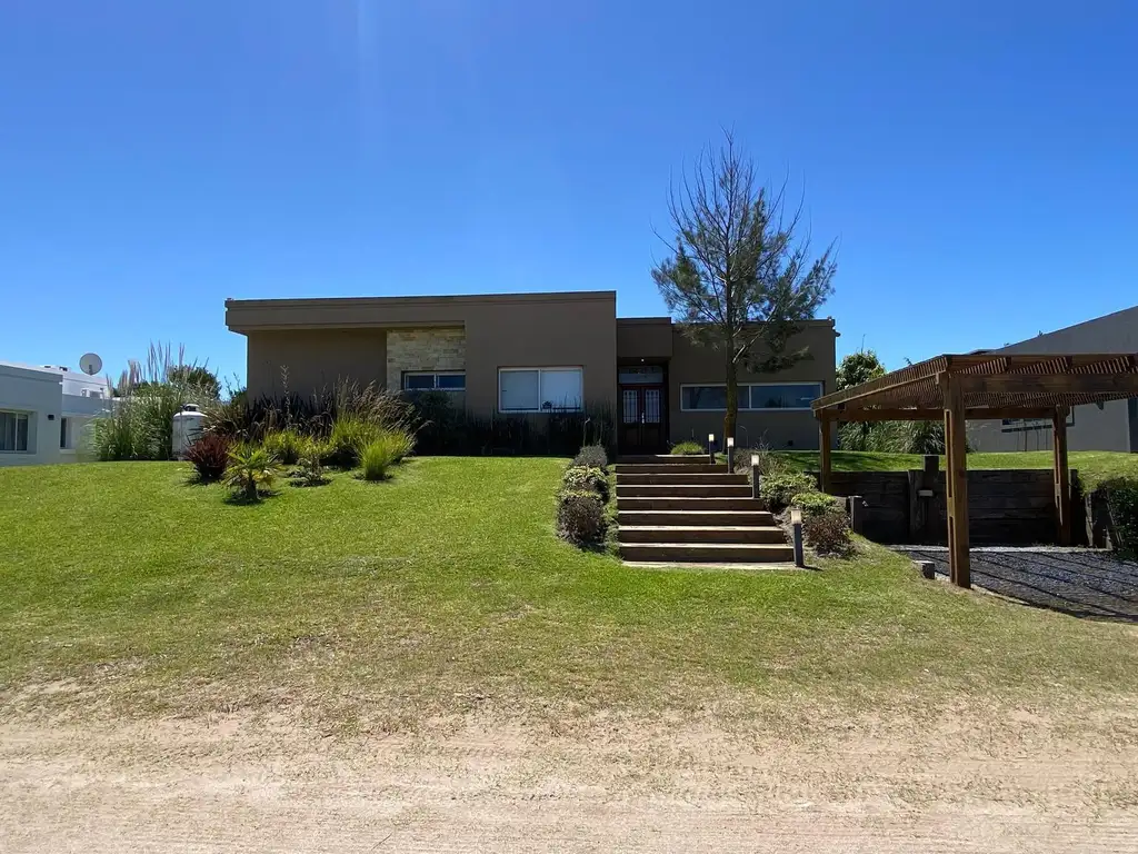 La propiedad cuenta con 240 m2 construidos, desarrollados en una sola planta. Al ingresar, un hall de recepción nos da la bienvenida y nos conduce a un amplio living integrado al comedor principal, con una cocina abierta de generosas dimensiones y barra desayunadora. Un lavadero independiente complementa este sector con gran practicidad.
