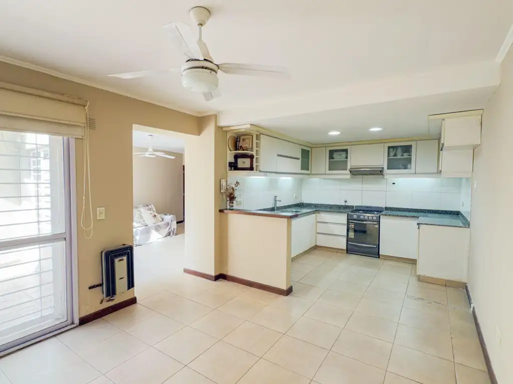 Living al frente, con generosas aberturas que aseguran buena luz natural.