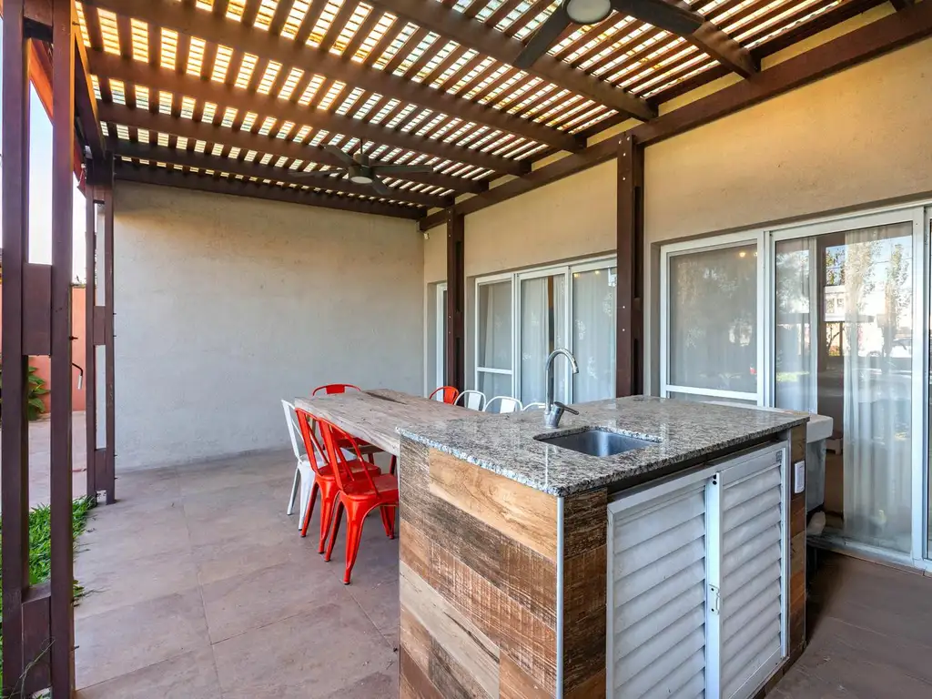 Descripción: Casa de dos dormitorios , uno de ellos en suite con jacuzzi y vestidor. El otro dormitorio principal tiene placard. Ambos con vista a aire libre . La casa cuenta con un ambiente para uso funcional de dormitorio comodín o escritorio. Cocina funcional con amoblamientos completos de bajo mesada, la cocina se integra al living comedor por medio de una isla . El ingreso de luz solar (cocina y comedor)es de Orientación Norte. Ventilacción cruzada por medio de ventanas y Puerta balcón que tiene salida a la galeria con pergola de madera , donde se encuentra el parrillero y una barra con bacha , creando así un espacio hacia el exterior y con vista al aire libre. Piscina de 6,50m x 3m con equipo de filtrado y Bomba instalada. Cochera semicubierta para dos automoviles.