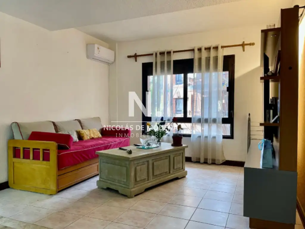 El living comedor se presenta como un espacio acogedor y luminoso, ideal para el descanso o la vida social cotidiana. La cocina bien equipada, de estilo moderno y funcional, cuenta con anafe, horno, microondas, heladera con freezer, campana extractora, y placares tanto en la cocina como en el dormitorio, brindando óptimo espacio de almacenamiento.