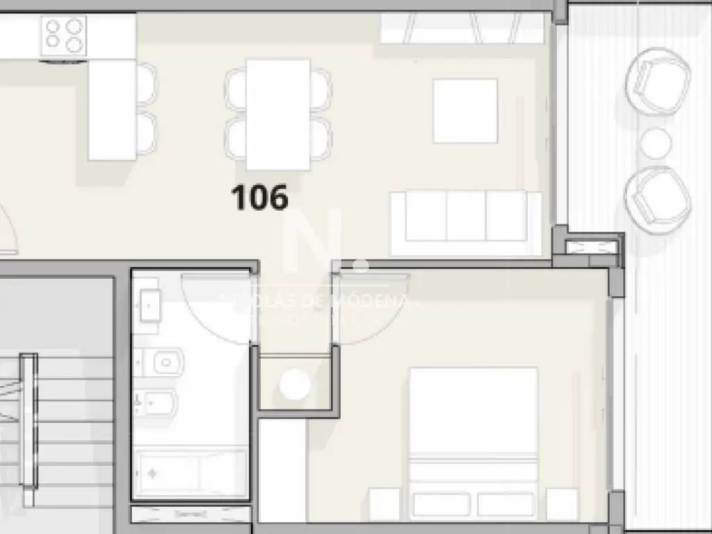 La unidad cuenta con 1 dormitorio y 1 baño completo, y está pensada para alojar cómodamente a 2 personas. El diseño interior ofrece un ambiente cálido y funcional, con un amplio living comedor que se integra naturalmente con una cocina bien equipada, donde destacan el anafe, horno empotrado y placares que optimizan el almacenamiento y la organización.