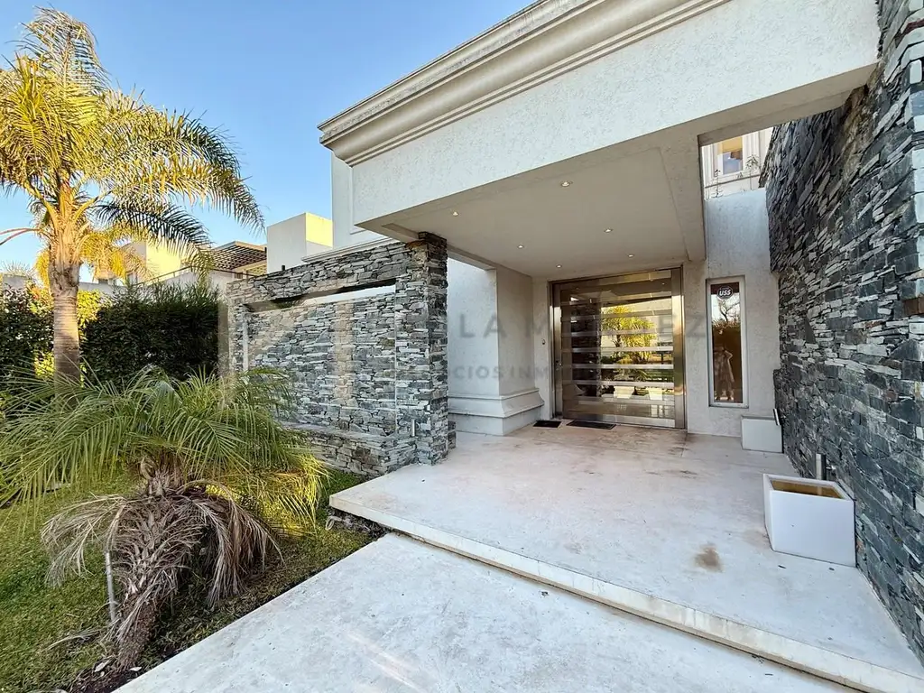 Te presentamos una propiedad de categoría, ubicada en el exclusivo barrio Los Alisos, con vista abierta a la laguna y detalles arquitectónicos únicos que combinan elegancia clásica con diseño moderno.