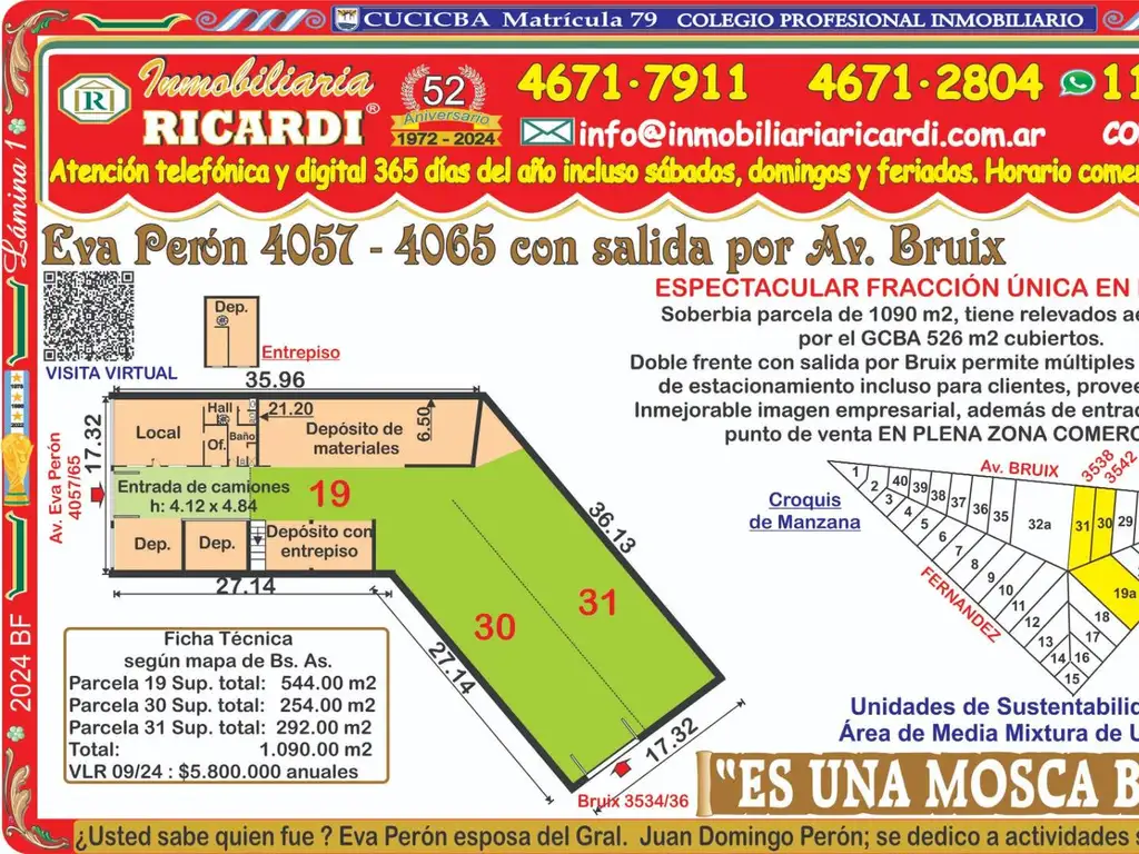 ES-PEC-TA-CU-LAR inmueble comercial y punto de venta ÚNICA EN LA ZONA en total son 3 parcelas que totalizan 1090 m2 de superficie de tierra en pleno centro comercial de Avda. EVA PERON