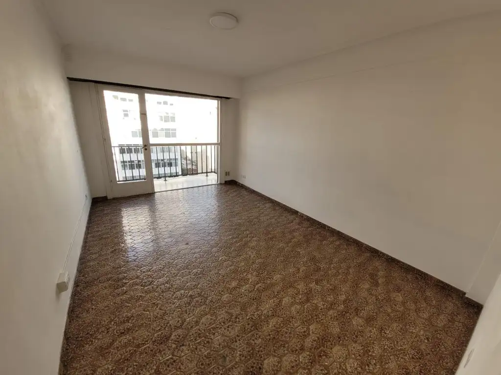 El dormitorio da al contrafrente, también con vista abierta, garantizando tranquilidad y muy buena luz natural. Baño completo con bañera en excelente estado.