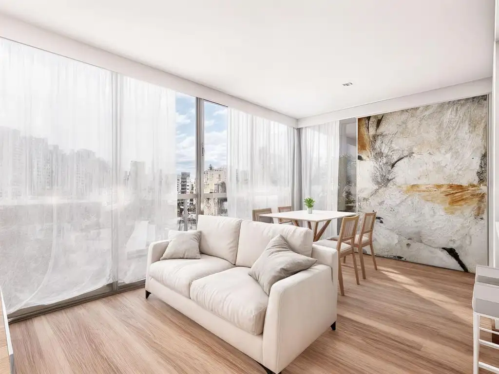 Super luminoso con grandes ventanales. Living comedor con salida a balcón y cocina americana. Dormitorio con amplio placard con interiores. Baño completo. Split frío/calor instalado.
