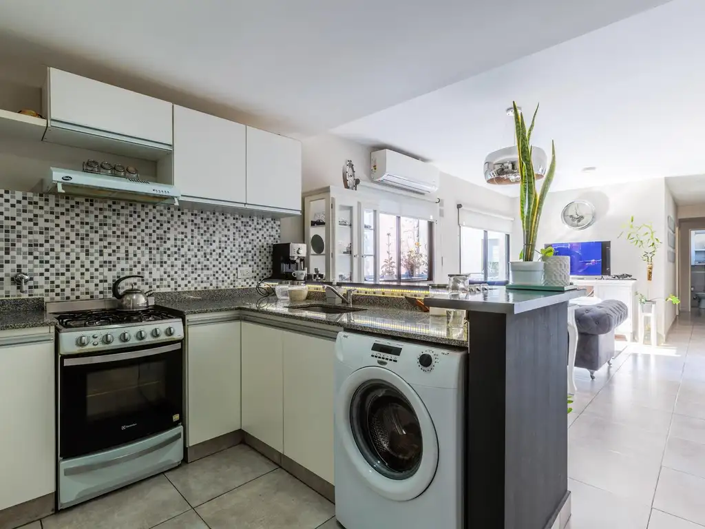 Descripción: Departamento de 2 dormitorios, con balcón, orientación norte y disposición lateral. Al ingresar nos encontramos con la cocina sectorizada y espacio para lavarropas, dividida con una barra desayunadora, el estar-comedor se conecta visualmente con la cocina, creando un ambiente social amplio y funcional. Nos dirigimos al íntimo y ubicamos los 2 dormitorios con placares empotrados y baño completo.