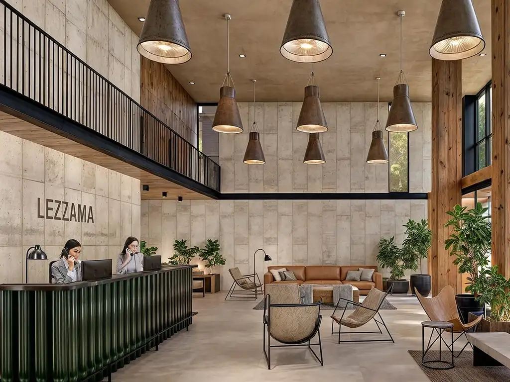 Lezzama cuenta con un diseño propio y contemporáneo que integra dos alas conectadas por un gran espacio verde interno.