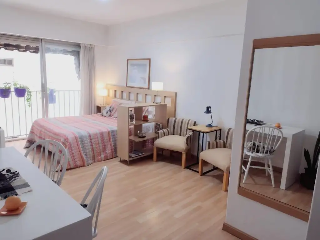 Excelente Departamento Monoambiente de 30mts2 al contrafrente con cocina separada. Súper Luminoso. Totalmente Equipado y Amoblado. Internet Wi-Fi. TV con Cable. Una Cama Queen o dos camas Twins. Heladera. Microondas. Aire Acondicionado. Calefaccion central. Baño Completo.