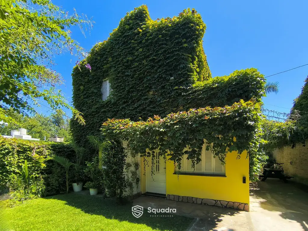El jardín cuenta pileta, un pequeño baño y una habitación al patio (hoy usada como local), lavadero y un quincho cerrado con parrilla.