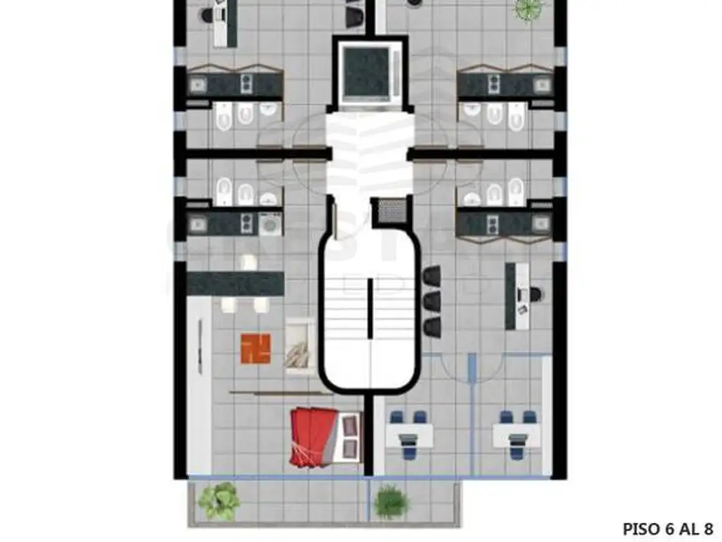 Unidad al frente con orientación Este. Ambiente único con cocina incorporada y salida a un balcón al frente. Además cuenta con un baño completo con ventilación e iluminación natural.