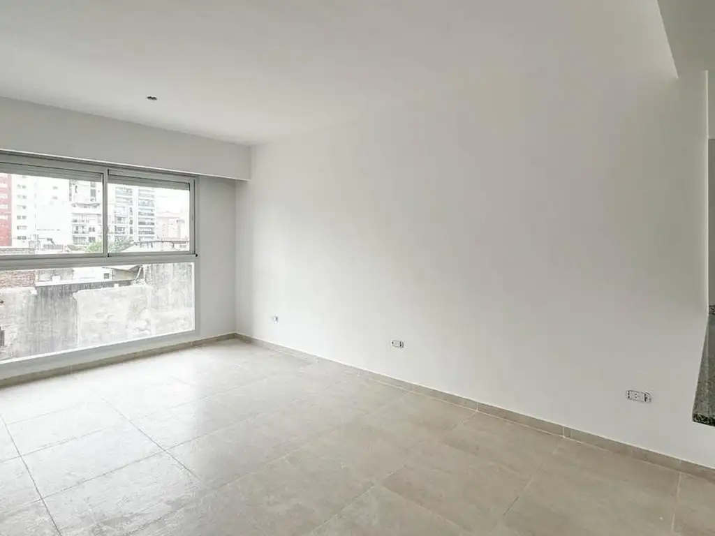 Nos recibe el estar comedor con la cocina integrada, un baño completo. Desde el estar comedor mediante un ventanal de piso a techo accedemos al hermoso patio de 24,83 m2.