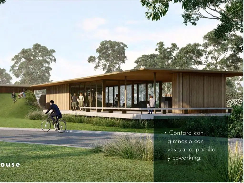 Club House que contará con gimnasio con vestuario, parrilla y coworking Gimnasio y vestuarios Canchas de tenis (2) Cancha de fútbol sintético Canchas de paddle (2)