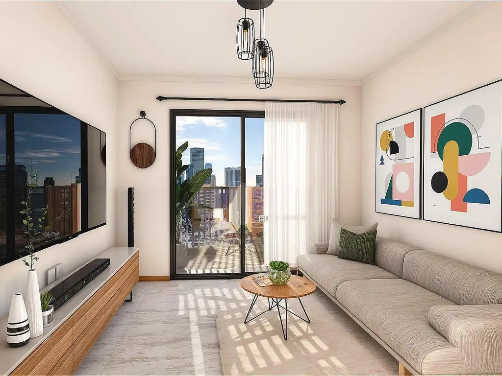 Los departamentos de 1 dormitorio se componen de living comedor cocina integrada y salida al balcon, dormitorio con placard y baño completo.