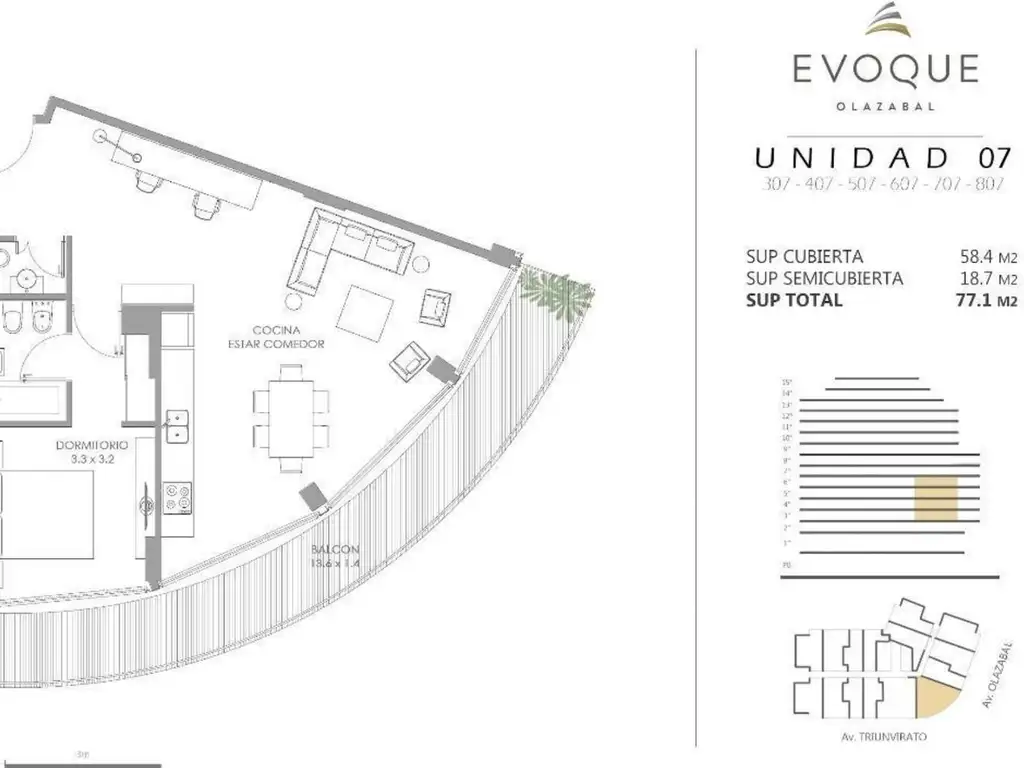 Evoque Olazabal es un edificio residencial-profesional de 15 pisos de altura ubicado en Villa Urquiza.